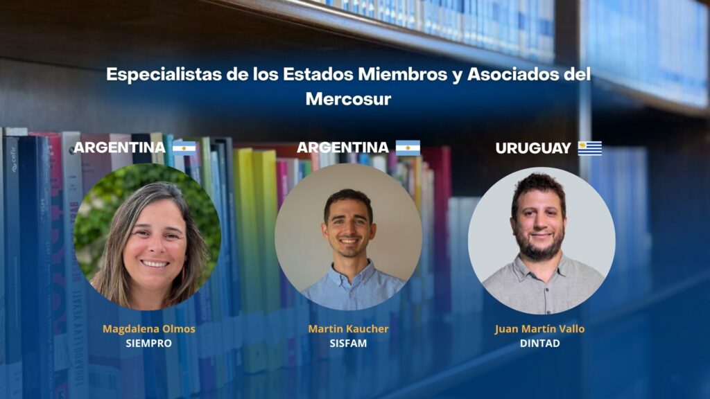 Para el caso del primer webinario participaron funcionarios públicos, técnicos y especialistas de organismos de los Estados Parte del MERCOSUR y de los Estados Asociados con competencia en sistemas de información de datos sociales, investigadores, agencias de cooperación y público interesado.