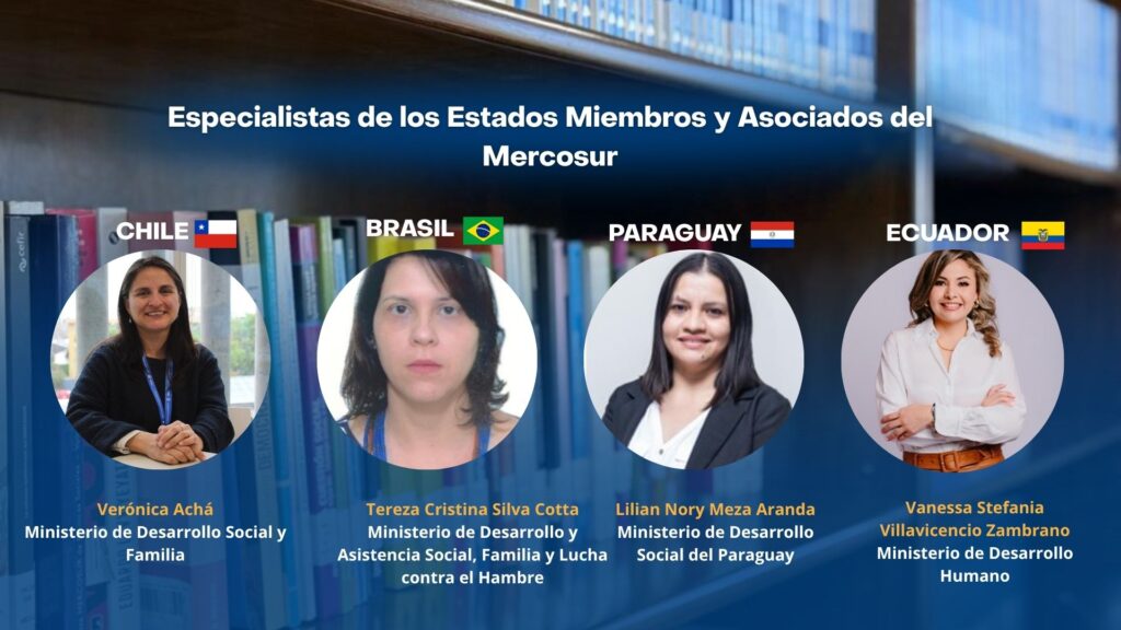 Participaron expertos de seis países – Brasil, Argentina, Paraguay, Uruguay, Chile y Ecuador -, todos ellos representantes de los Estados Miembros y Asociados del Mercosur. El webinario alcanzó una amplia convocatoria, con 264 personas inscriptas provenientes de distintos países de la región, consolidando un espacio de diálogo y cooperación en torno a los desafíos y avances sobre los registros sociales para el fortalecimiento de los sistemas de protección social en el Mercosur.